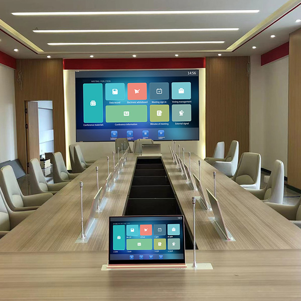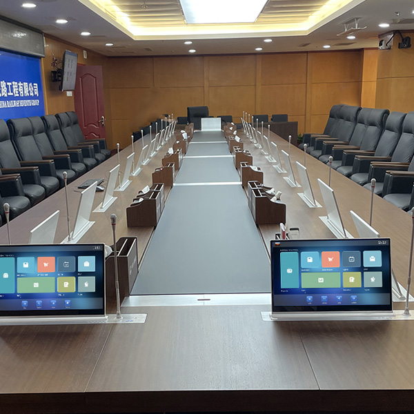 Tacaíonn an córas le bainistiú comhuaineach seomraí cruinnithe iolracha agus ilchomhdhálacha. Trí mhodh idirghníomhaíochta leathanach amhairc, déanann sé áirithinte comhdhála, cumraíocht comhdhála, socrú saincheisteanna, agus oibríochtaí réamhshocraithe socrú suíochán níos éifeachtaí, feabhas a chur ar éifeachtúlacht cruthú agus cumraíocht comhdhálacha gan pháipéar, feabhas a chur ar chumas idirghníomhaíochta faisnéise, bainistíocht sonraí le linn an chruinnithe, agus cartlannú sonraí agus cúltaca slándála tar éis an chruinnithe. Thairis sin, tá cumais bhainistíochta comhdhála aige. Nuair a úsáidtear é mar sheomra cruinnithe rialta, ní gá tógáil arís agus arís eile agus is féidir é a úsáid go díreach.Sa chóras comhdhála gan pháipéar, is féidir aonad micreafón agus fuaime comhdhála an chríochfoirt chomhtháite deisce a nascadh leis an teirminéal físchomhdhála.