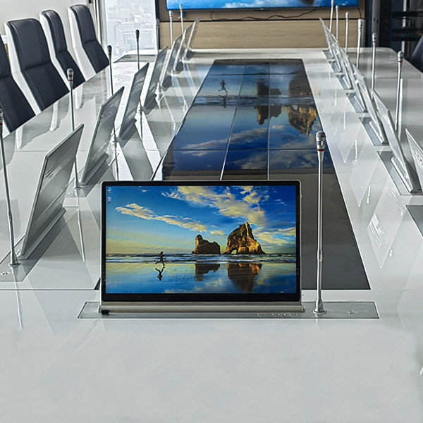 Tábla Ardaithe Monatóireachta LCD Mótaraithe Retractable le haghaidh Córas Comhdhála gan Pháipéar
