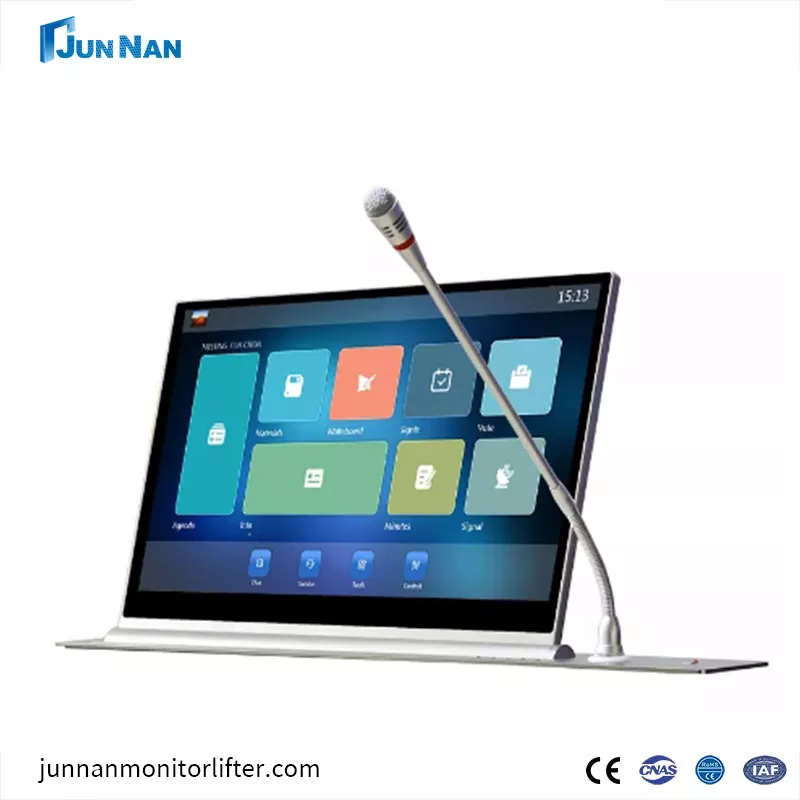 Is fiontar nuálaíoch tionscail agus comhtháthaithe trádála muid, agus muid ag gabháil go príomha i dtrealamh córais comhdhála oifige. Tá ár gCeanncheathrú lonnaithe i gCeantar agus i mBaile Baiyun, díriú ar tháirgeadh taighde agus forbartha córas comhdhála gan pháipéar, monatóireacht a dhéanamh ar chóras comhdhála ardaitheoir, ardaitheoir LCD, soicéad dromchla, ardaitheoir teilifíse / teilgeoir 13 bliana, clúdaíonn ceardlann achar 2000 méadar cearnach, foireann taighde agus forbartha níos mó ná 10 duine, tacaíonn sé le saincheaptha táirge go hiomlán, le ardchaighdeán, ardleibhéal, ardleibhéal táirgthe teicneolaíochta agus foirne seirbhíse-tairbhe. Faoi láthair, baineadh úsáid fhorleathan as ár gcuid taighde agus forbartha ar chóras comhdhála monatóireachta monatóireachta ardaitheoir ar an rialtas, scoileanna, slándáil phoiblí, bainc, fiontair agus tionscail eile, ní hamháin go ndíolann an córas comhdhála ardaitheoir go maith sa tSín, ach a onnmhairíonn go léir ar fud an domhain, go háirithe sa Mheánoirthear, san Eoraip, i Meiriceá, i Meiriceá Thuaidh agus i réigiúin eile, a fuair custaiméirí go maith. Tá CE, ROHS, CCC, deimhniú Saber faighte ag ár gcóras comhdhála ardaitheoir monatóireachta, agus tá roinnt paitinní táirgí agus trádmharcanna cláraithe aige. Ina theannta sin, tá cóipcheart bogearraí ríomhaireachta ag an gcóras comhdhála gan pháipéar, a bhfuil neart agus iomaíochas leordhóthanach aige sa tionscal.